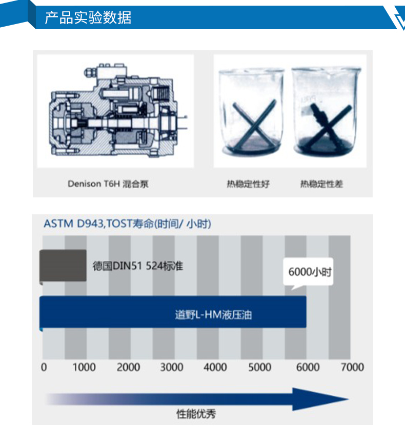 良好的熱穩(wěn)定性=系統(tǒng)清潔,閥件卡阻少,適合高溫嚴苛工況,換油周期長。道野L-HM液壓油順利通過Cicinati測試,油泥僅為標準的五分之一。